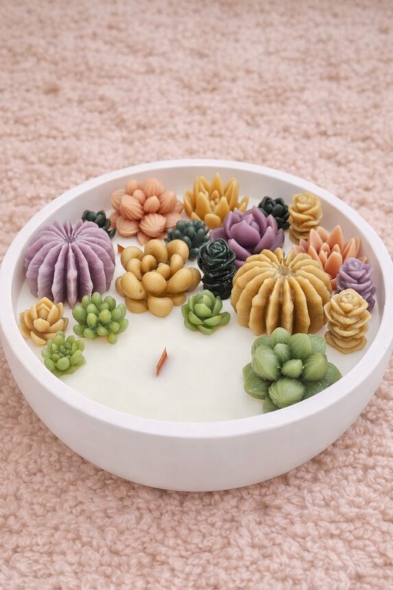 Designul sau unic include suculente modelate manual din ceara, atent detaliate pentru a crea un efect realist si estetic. Este mai mult decat o simpla lumanare suculent – este o piesa decorativa care transforma orice incapere intr-un spatiu relaxant.